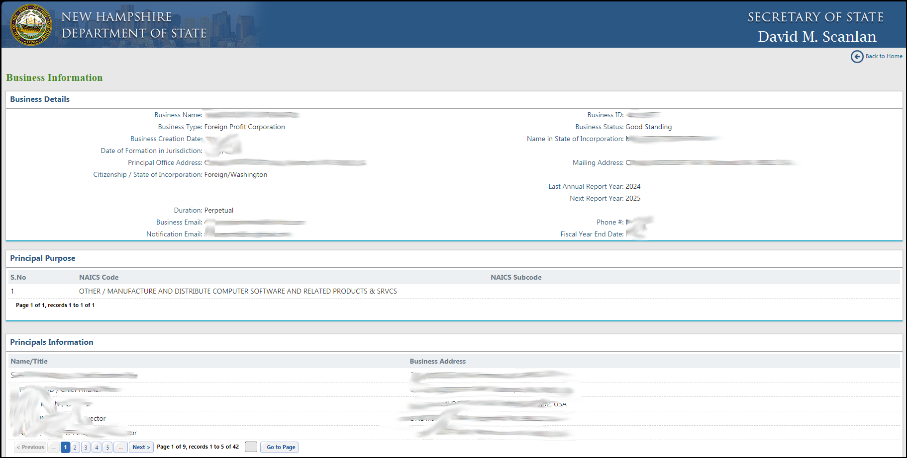 - Access details about New Hampshire LLCs, corporations, and other entity types.